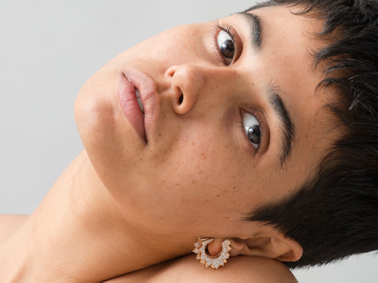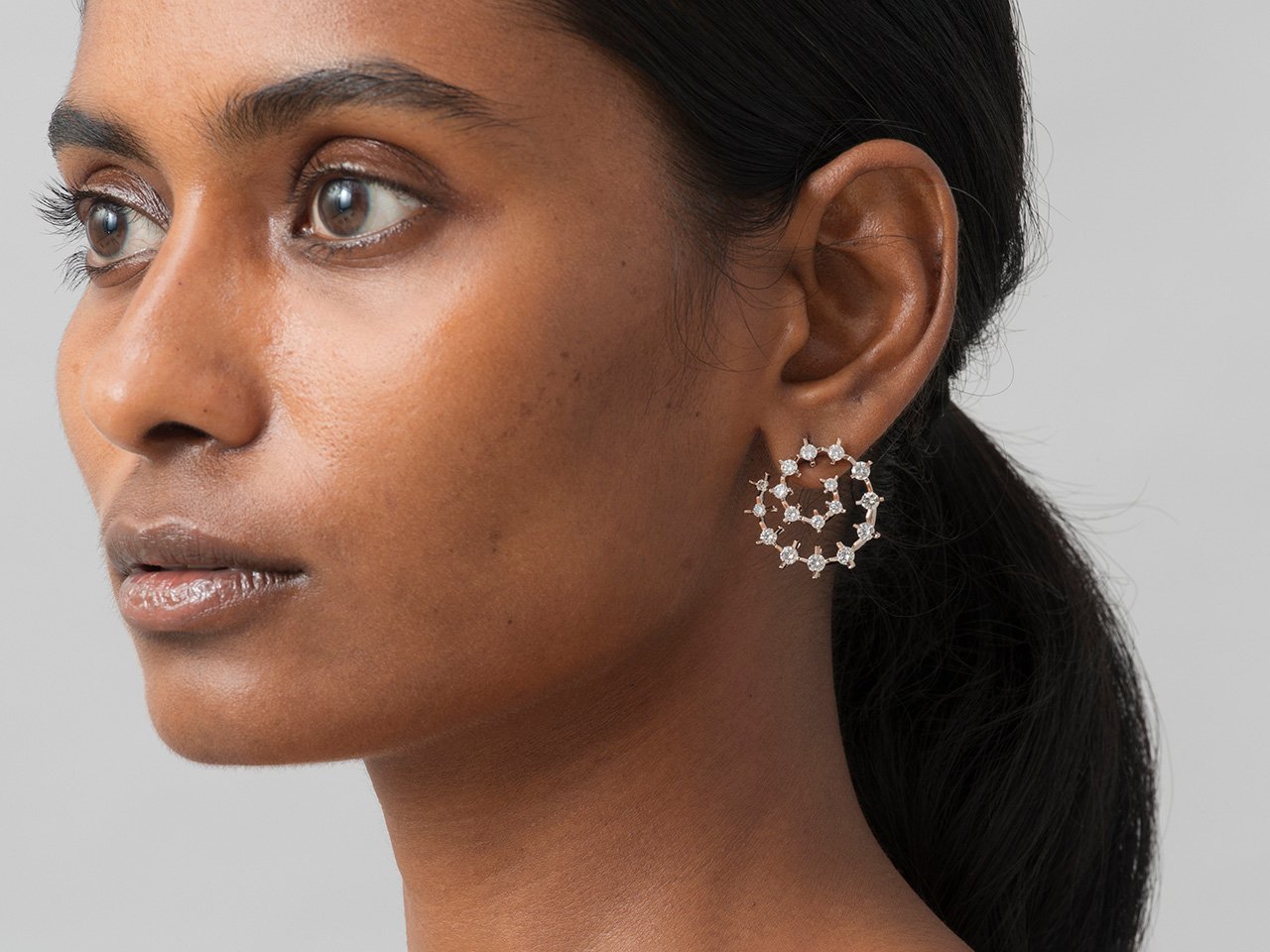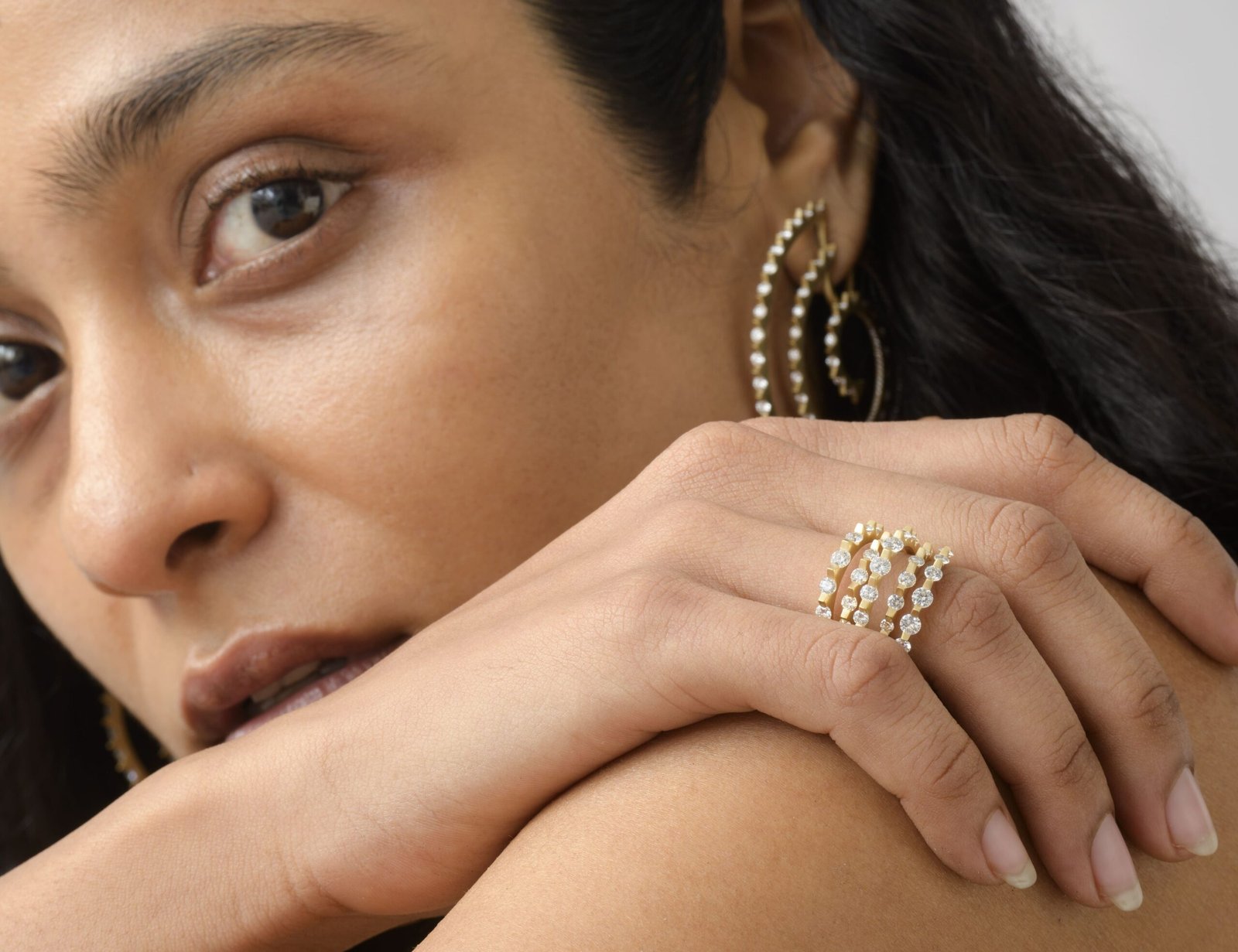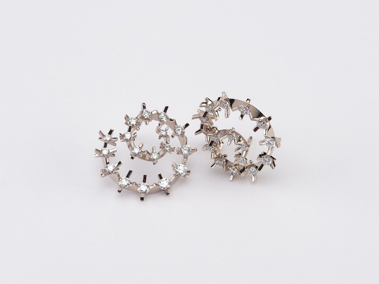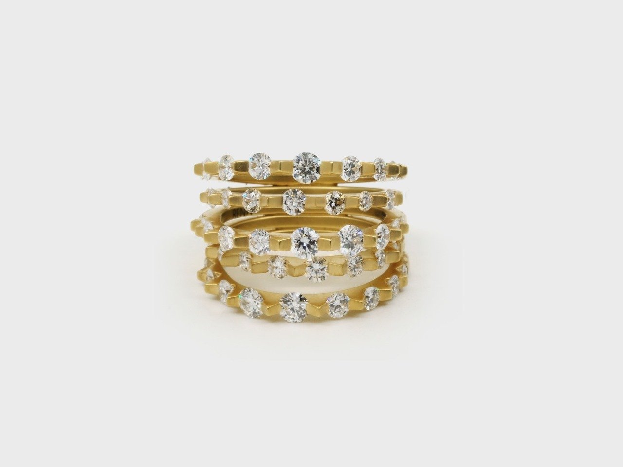 The Cacti is an abstract interpretation that features diamonds precariously set between serrated edges and held inside folds of gold. The exposed fragile corners of the diamonds reinforce the fierceness of the visual language of the works. The subverted gold in matte contrasts the diamonds while the high-gloss gold amplifies the diamonds in the collection.