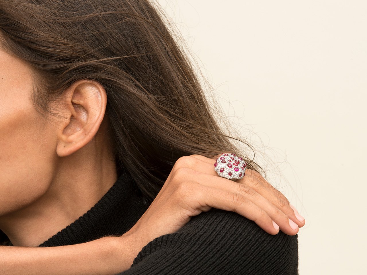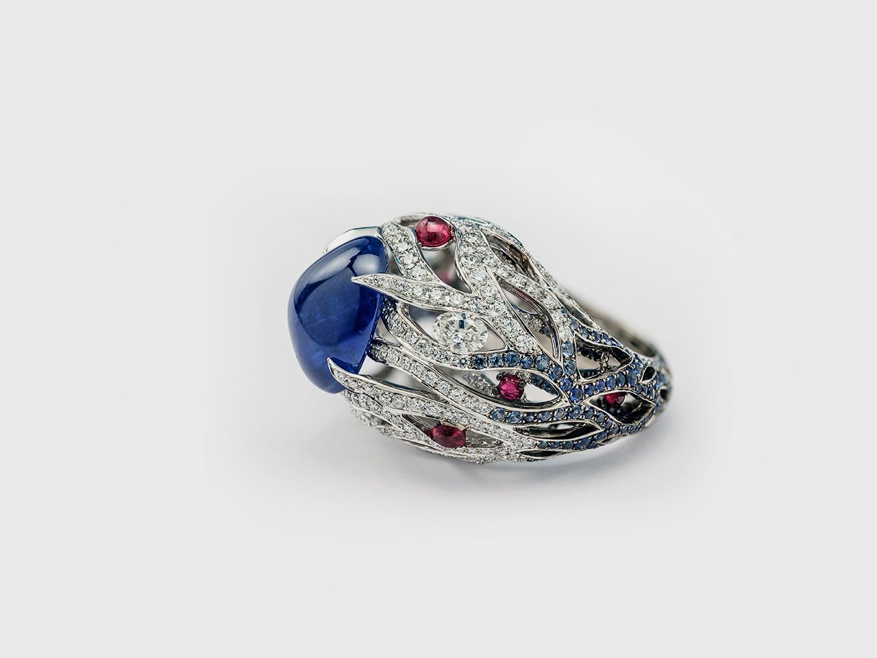 The Bleeding Tooth is an exploration of the beauty of ugliness. The works are (dis)oriented – they have no front or back, top or bottom, inside or outside. The use of gem cabochons in multiple settings is an important exploration that will continue to feature in future works of the Studio.