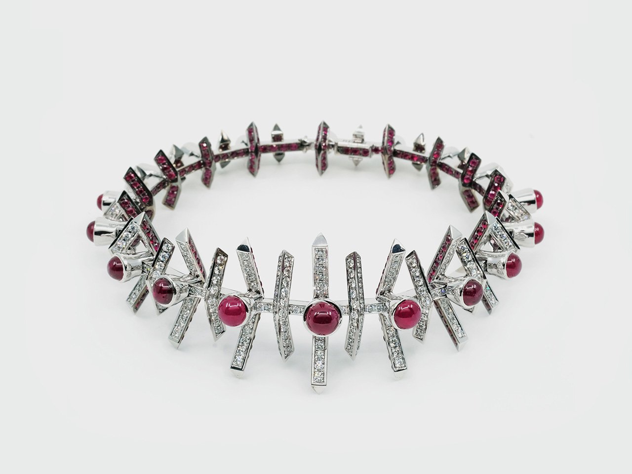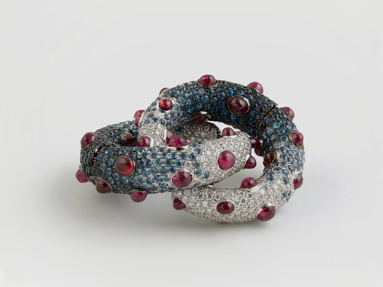 Ruby Cabochons, Burmese Sapphires, Diamonds, White Gold