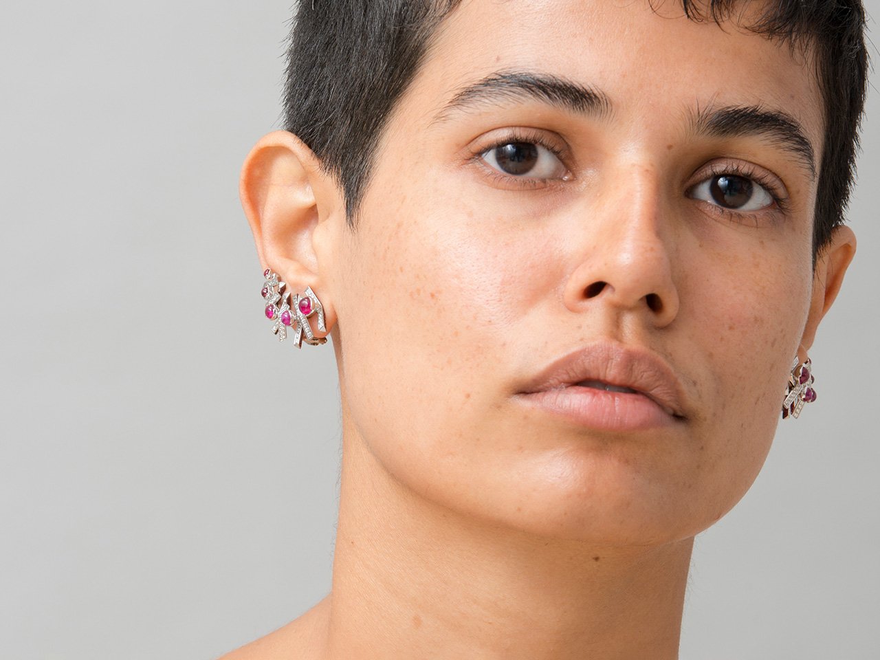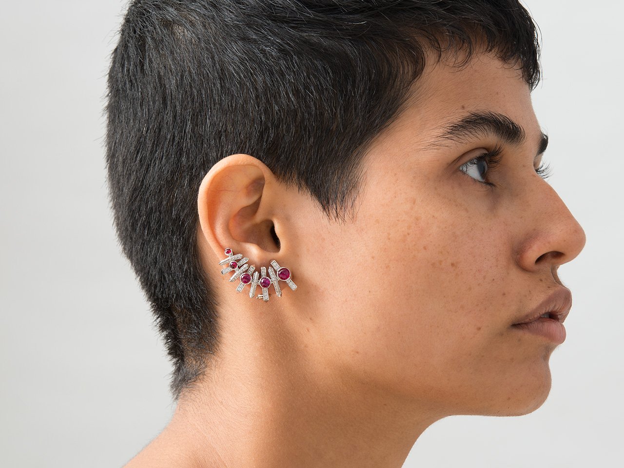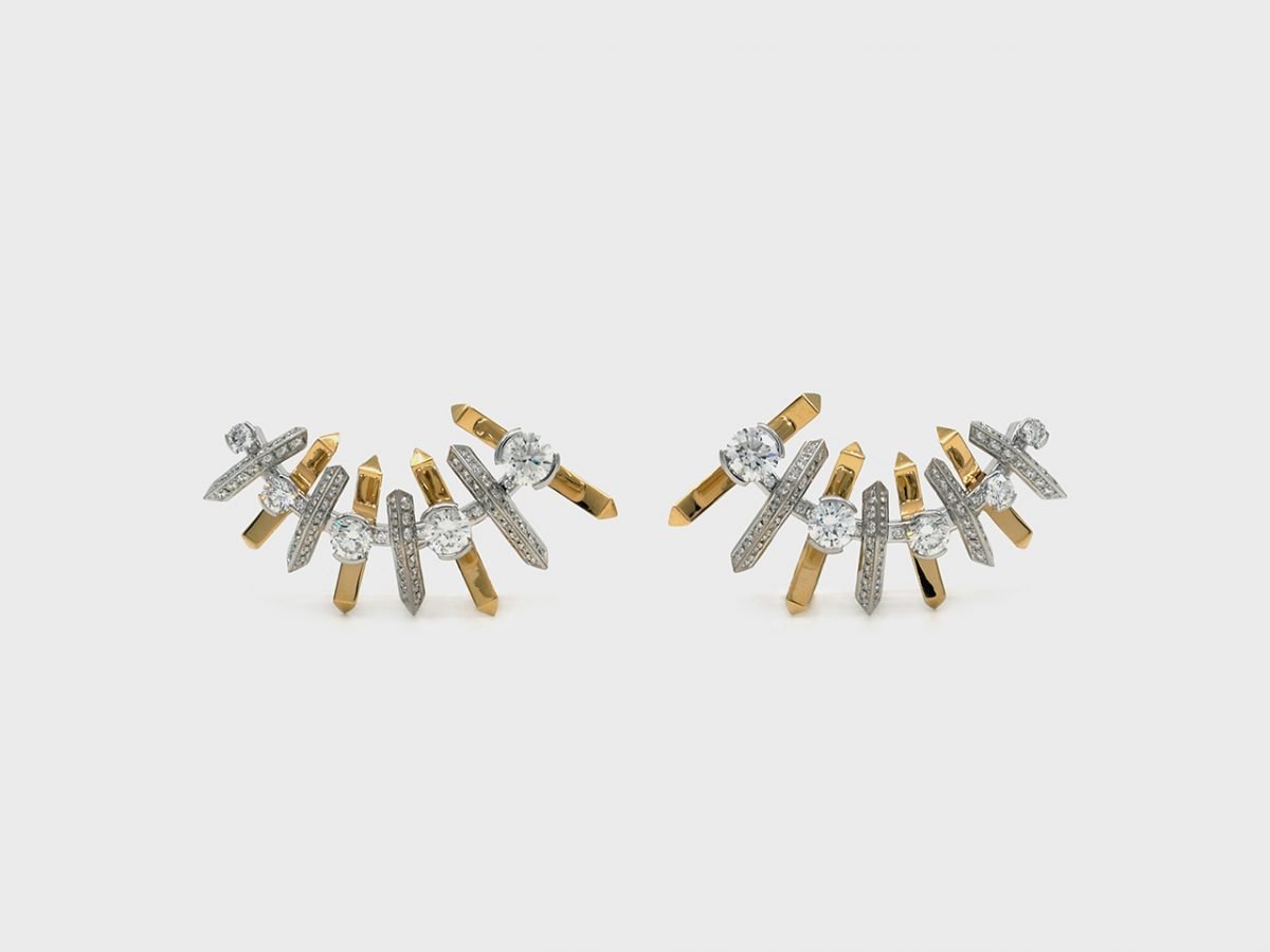 The Fish ruby ear climbers delve into the significance of simple things by abstracting forms in nature. The design is translated into a visual language of a line folded to create ribs and spines through a distinct pattern.