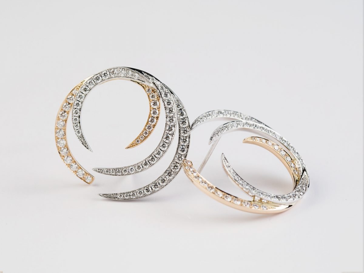 The earrings in 18k white and rose gold are set with diamonds.